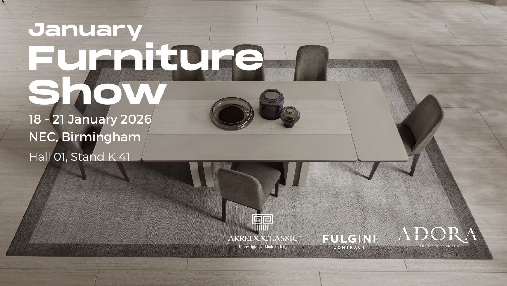 Adora sarà protagonista al January Furniture Show 2026 con le sue collezioni di lusso contemporaneo luxury-à-porter.