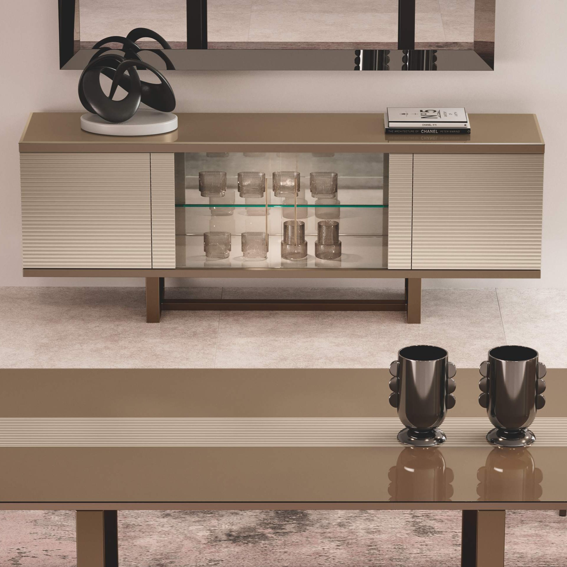 Lo specchio small (Art./Apt. 31) è la soluzione ideale per il buffet a 2 ante, arricchendo la zona giorno con riflessi discreti che esaltano le linee moderne dell’arredo. La versione medium (Art./Apt. 31) completa con equilibrio il comò a 6 cassetti, ampliando visivamente lo spazio con un’eleganza luminosa. Per un effetto scenografico più deciso, lo specchio large (Art./Apt. 31) è pensato per il buffet a 4 ante e avvolge l’ambiente in un’aura di armonia ricercata, esprimendo al meglio la vocazione decorativa della Collezione Linea.
