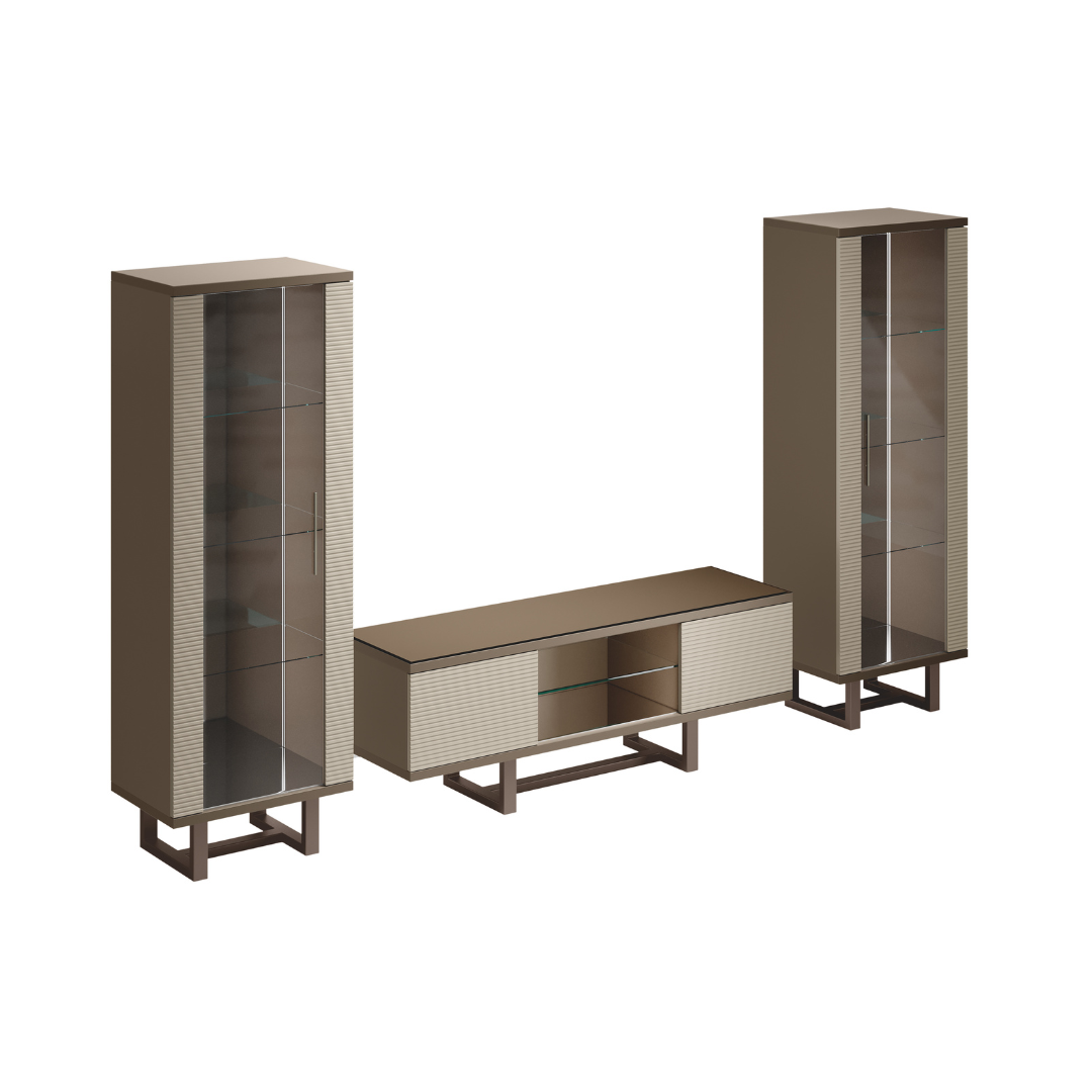 Disponibili in diverse configurazioni, i mobili TV Linea offrono ampi spazi di archiviazione, ideali per riporre accessori, dispositivi elettronici e oggetti decorativi. Le composizioni TV consentono di personalizzare la propria zona intrattenimento, integrando elementi come vetrine, contenitori e vani aperti, per una soluzione su misura che si adatta a ogni esigenza.