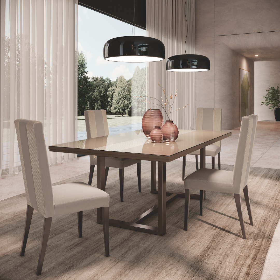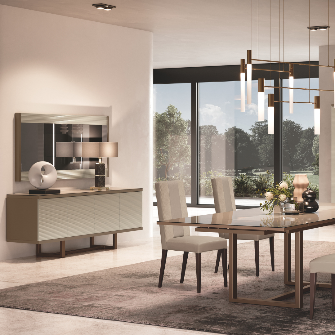 La sedia Linea coniuga il comfort e lo stile di Adora grazie all’imbottitura avvolgente e alla raffinata lavorazione a doppio tessuto tono su tono. La parte centrale dello schienale è caratterizzata da una texture rigata che richiama il motivo lineare della collezione.