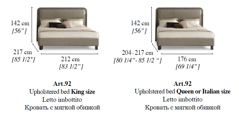 | Art. 91 Bed with Upholstered headboard Queen or Italian Size | 176 cm | 204-217 cm | 142 cm |